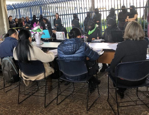 Este 15 de enero el colectivo Mujeres Organizadas de la FFyL, que tomó las instalaciones desde el pasado 4 de noviembre para exigir atención a los reiterados casos de violencia y acoso hacia las estudiantes, se reunió con el director de la Facultad, Jorge Enrique Linares Salgado, y con otras autoridades universitarias para dialogar sobre las acciones para entregar la escuela y regresar a clases.