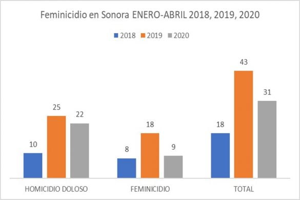 Hermosillo, Son. Un total de nueve víctimas de feminicidio en ocho eventos, y 22 homicidios dolosos contra mujeres reportó el Secretariado Ejecutivo del Sistema Nacional de Seguridad Pública (SESNSP) en el primer cuatrimestre de 2020 en Sonora.