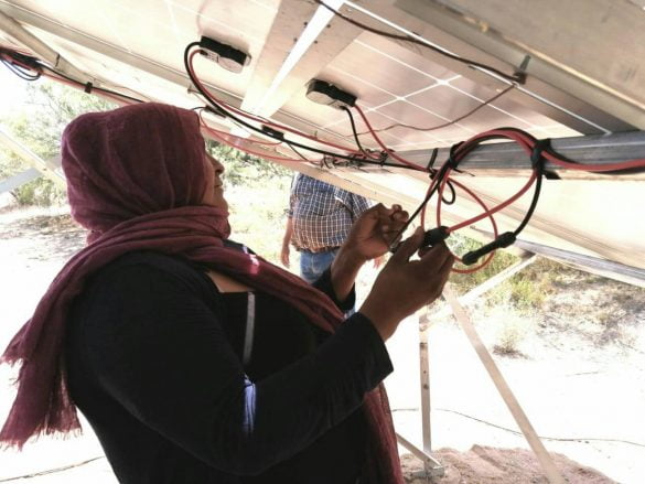 “Estuvimos checando junto con el ingeniero y sus ayudantes, ver que estén conectados todos los paneles, porque es una estructura que está más alta que nosotras”, narró la ingeniera solar, “hizo mucho calor y estuvimos dos días yendo al pozo y, el tercer día, fuimos al entierro de nuestra compañera Francisca a Punta Chueca.»