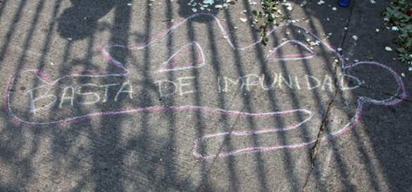 El «Frente Radical Feminista de Puebla» llamó a una manifestación la mañana de ayer en el zócalo de la ciudad, donde hicieron pintas con gis en el piso para recordar a las víctimas de feminicidio. También colocaron ropa, velas, flores y carteles con mensajes exigiendo