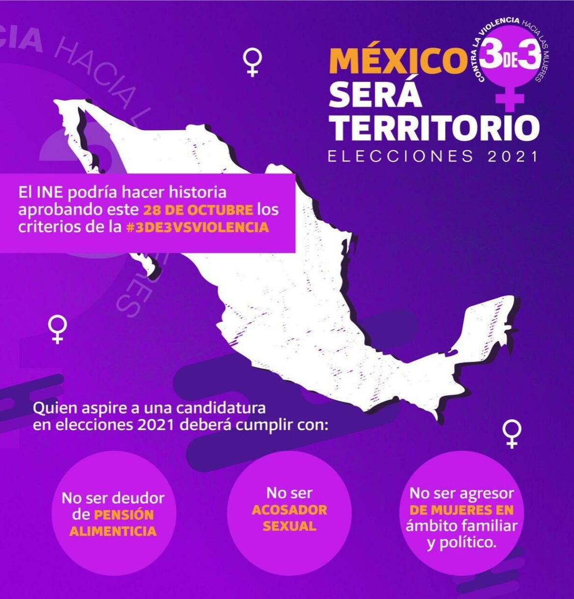 La propuesta conocida como #3De3VsViolencia, emanada de la sociedad civil e impulsada por diputadas federales, defensoras de los derechos políticos de las mujeres, la Red Nosotras Tenemos Otros Datos y Las Constituyentes Feministas fue incluida en los Lineamientos para que los partidos políticos nacionales prevengan, atiendan, sancionen, reparen y erradiquen la violencia política contra las mujeres en razón de género, aprobados este miércoles.