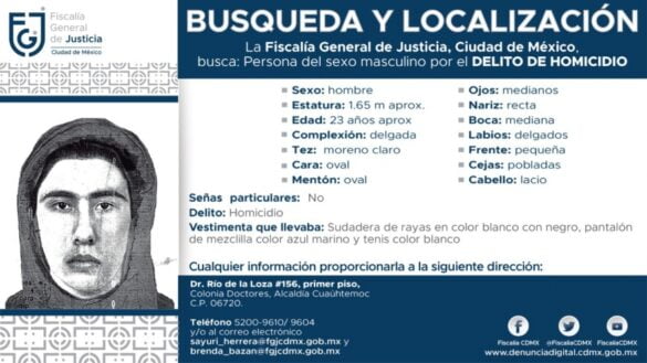 Ciudad de México.- La Fiscalía Especializada para la Investigación del Delito en Feminicidio en la Ciudad de México busca al probable agresor de Karla Marisol Valencia Yáñez, asesinada en la alcaldía Gustavo A. Madero, en 2016.