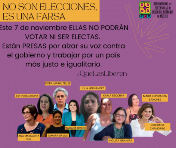 Ciudad de México. Ante la detención arbitraria de defensoras y lideresas nicaragüenses por casi seis meses, las defensoras de la Red Nacional de Defensoras de Derechos Humanos en México (RNDDHM) demandaron al gobierno mexicano pronunciarse a favor de la liberación de las presas políticas y a que el 7 de noviembre se lleve a cabo en Nicaragua, un proceso electoral transparente, libre, y bajo la supervisión de la comunidad internacional.