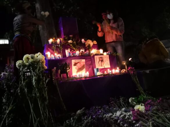 El reloj marca las 21:00 horas y las primeras fotografías son colocadas en el altar. Es la de Arlette Azucena Sosa Luis de 20 años de edad que fue asesinada el 8 de enero de 2021 al salir de su trabajo rumbo a su casa. Ella abordó un taxi y un día después su cuerpo fue hallado en un terreno baldío en inmediaciones de San Antonio de la Cal.