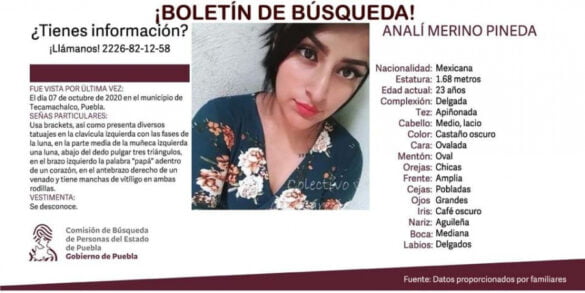 Puebla, Pue. Un año y cuatro meses han pasado desde la desaparición de Analí Merino Pineda en el municipio de Tecamachalco, Puebla, y es por la falta de avances en la investigación que este lunes su familia y el colectivo «Voz de los desaparecidos», marcharon en la capital del estado.