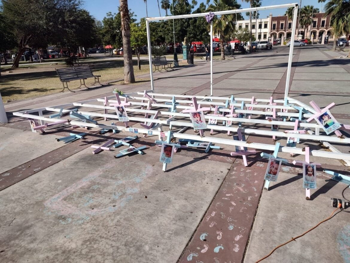 Para Julia Escalante Barrios madre de la niña Fátima Sofía Moreno Escalante, fallecida en la Guardería ABC, el destrozo de las cruces de la Plaza Emiliana de Zubeldía es un claro mensaje de querer callarlos.