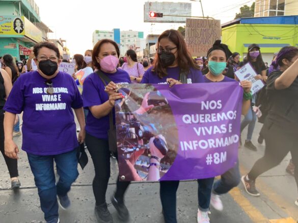 Hoy nos unimos a la marcha del 8 de marzo para exigir justicia por el caso de nuestras compañeras asesinadas en el país; pero también por los dos compañeros periodistas asesinados en Chiapas y que sus familias siguen exigiendo justicia y nosotras nos sumamos a ello.