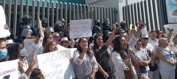 Tras el probable feminicidio de la activista feminista y abogaba Cecilia Monzón Pérez en San Pedro Cholula, Puebla, colectivas y organizaciones feministas se dieron cita frente a las oficinas centrales de la Fiscalía General del estado de Puebla para exigir justicia y pedir una investigación con perspectiva de género.
