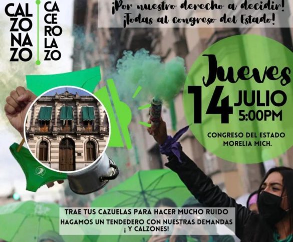 La protesta por los derechos sexuales y reproductivos de las mujeres será este jueves 14 de julio a las 5:00 p.m. en Morelia. Las Matrioskas invitan a llevar cacerolas para “hacer mucho ruido” y también muchos calzones para formar un tendedero de las demandas aún pendientes para las mujeres.