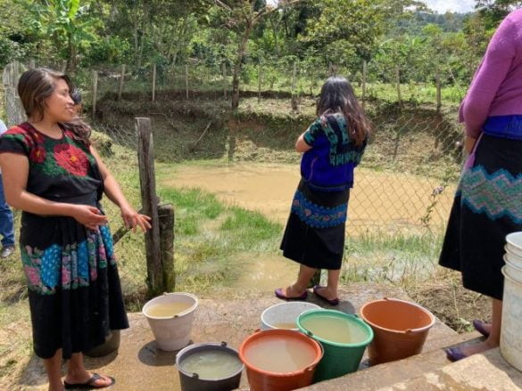 Para el uso diario lo que usan es lo que se almacena en los pozos, que más bien son una especie de jagüey, que se llena con las precipitaciones. Está a cielo abierto. El agua es turbia y parece imposible que pueda servir para algo, pero en la comunidad sirve para todo: lavar ropa y los trastes, bañarse, y algunas familias también la consumen. Dejan que se sedimente y después la hierven. Nadie se ha enfermado por tomarla aseguran los encargados de salud de Tzabalhó.