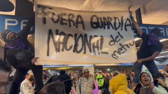 Fue el pasado 13 de enero cuando mujeres arribaron a la estación con carteles como “Fuera Guardia Nacional del Metro”, “Militarización” y “Hay que abortar la Guardia Nacional” para evidenciar la inconformidad por la decisión de la jefa de gobierno, Claudia Sheinbaum, de instalar a seis mil 60 elementos para presuntamente “salvaguardar” la seguridad de la ciudadanía.