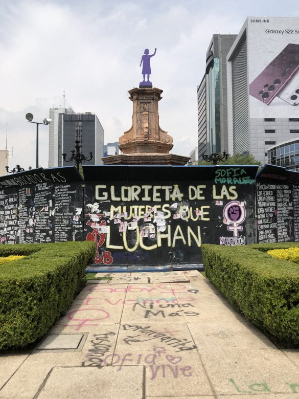 Fue en septiembre de 2021 cuando un grupo de mujeres intervinieron este espacio para conformar la Glorieta de las Mujeres que Luchan con un jardín de la memoria, un tendedero de denuncias y una antimonumenta.