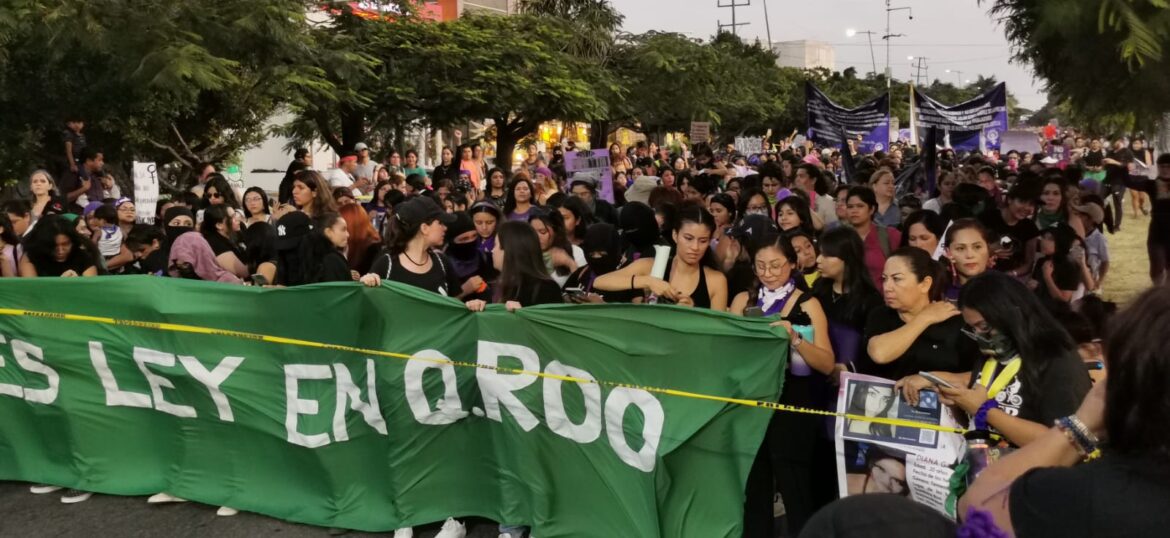 Mas de 4 mil mujeres marchan en Cancún, en protesta por la violencia feminicida, pero también para celebrar la despenalizacion del aborto hasta las 12 semanas de gestación, en el marco del Dia Internacional de la Mujer.