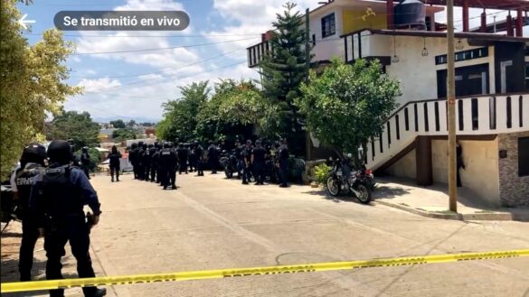 Una transmisión en vivo realizada por reporteros que cubrían el hecho, muestra la magnitud del operativo, así como el momento en que un elemento de la policía, bajo amenazas de ser requeridos, los obliga a bajar el dron con el que realizaban las tomas aéreas.