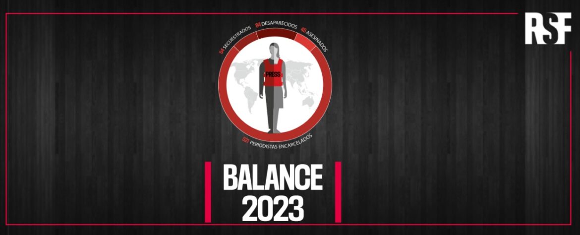 Ciudad de México.- En el informe anual de Reporteros Sin Fronteras (RSF) se indica que al cierre del 2023, 45 periodistas fueron asesinados en el mundo, 779 periodistas estuvieron encarcelados de los cuales 547 recibieron el año detenidos en 45 países y seis de las ocho penas más duras impuestas sobre el gremio recayeron en mujeres.