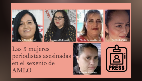 Ciudad de México.- En lo que va de la administración del presidente Andrés Manuel López Obrador han sido asesinadas 5 mujeres periodistas, la mayoría de los hechos se concentran en mayor medida en Veracruz, Bajan California y Tabasco, en la mayoría de los casos los avances de la investigación son nulos y se sigue esperando que se haga justicia.