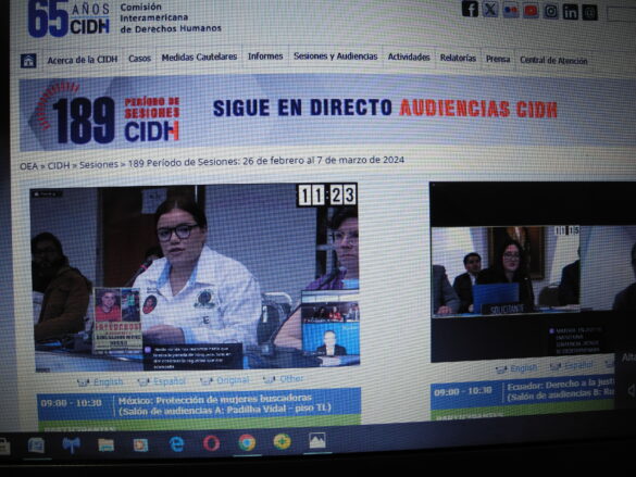 Ciudad de México.- Colectivas de personas buscadoras acudieron en compañía de defensores de derechos humanos a la audiencia pública 189 de la Comisión Interamericana de Derechos Humanos (CIDH) para exponer la problemática de las desapariciones y la respuesta del Estado mexicano ante los hechos.