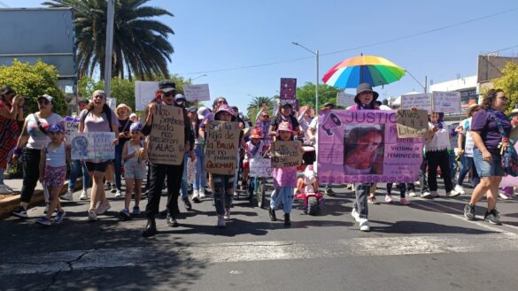 Prosigue, “hoy venimos a marchar de forma pacífica y acompañadas de los familiares de las víctimas, en compañía de las infancias, para levantar la voz. Para que exista justicia para todas las mujeres víctimas de feminicidio, de violencia vicaria, de desaparición, de violaciones y de violencia de género”.