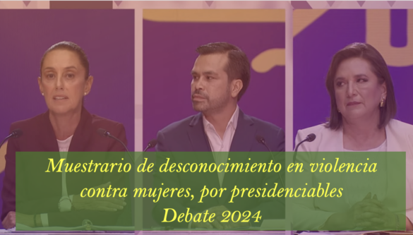 Ciudad de México.- Este domingo 7 de abril del 2024 se llevó a cabo el primer Debate Presidencial en las instalaciones del Instituto Nacional Electoral (INE), donde las dos candidatas Sheinbaum y Gálvez así como el candidato Álvarez, durante las dos horas que duró el evento exhibieron su total carencia de propuestas para erradicar violencias contra mujeres en México, aunque para el debate, este tema era crucial, los tres presidenciables perdieron la oportunidad de consolidar ideas, propuestas y dirigirse a las mexicanas quienes hoy enfrentan en territorio nacional un situación que violenta sus derechos humanos.