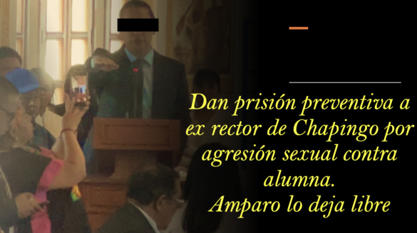 Ciudad de México.- La jueza de control Diana Morales Benítez, adscrita al distrito judicial Texcoco, estado de México, determinó vincular a proceso a Angel N, rector con licencia de la Universidad Autónoma de Chapingo (UACh) por el delito de violación equiparada en contra de una alumna del plantel, pero a pesar de que se le impuso prisión preventiva justificada, pudo retirarse de la sala sin ser detenido, porque aún está en revisión un amparo que interpuso para no pisar la cárcel durante el proceso.