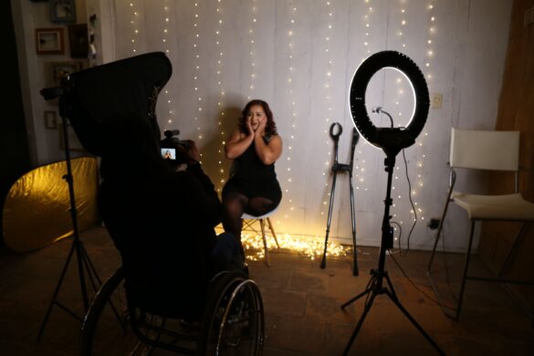 «Es un importante mirar fuera de la caja, muchas veces se nos pone a las mujeres con discapacidad como sinónimo de asistencialismo para toda nuestra vida, se nos pone en un lugar no sólo carente de privilegios y sino de me mucha vulnerabilidad, de todos nuestros derechos, desde recibir un diagnóstico oportuno, el derecho a la educación, al trabajo. Por eso es necesario enunciarse y tener las armas, en este caso, las fotos para visibilizar esta realidad, porque sí, hablamos de mujeres que logran metas, pero que en situaciones rurales e indígenas donde también he vivido, las mujeres con discapacidad no tienen siquiera el derecho de compartir con las mismas personas que viven en su casa», explica Jen Mulini.