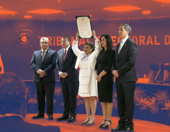 En este marco, se le entregó a la futura gobernadora la Constancia de Validez de la Elección de la Jefatura de Gobierno de la Ciudad de México, que recibió entre aplausos y acompañada de otras mujeres como la diputada Martha Ávila Ventura.