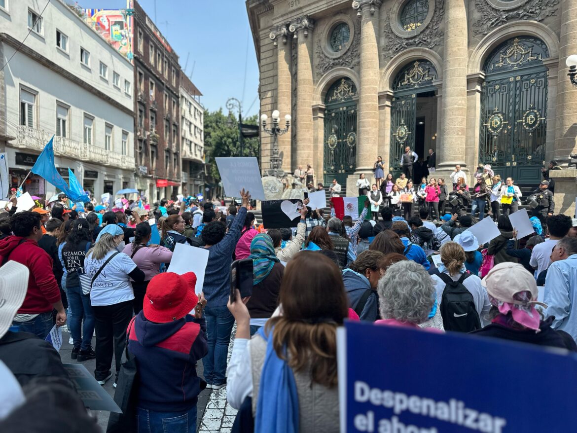 Por ejemplo, la Ciudad de México tuvo la presencia de la marea provida azul, cuyos integrantes prepararon un posicionamiento político acompañado supuestamente de 30 mil firmas para evitar que la iniciativa se apruebe.