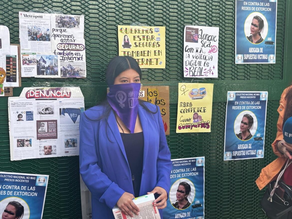 En punto de las 10 de la mañana, fuera de los juzgados, mujeres del Frente Nacional para la Sororidad, Defensoras Digitales del Movimiento Ley Olimpia y la Asamblea Justicia Digital IPN, realizaron un mitin en apoyo a la tercera alumna víctima de violencia digital.