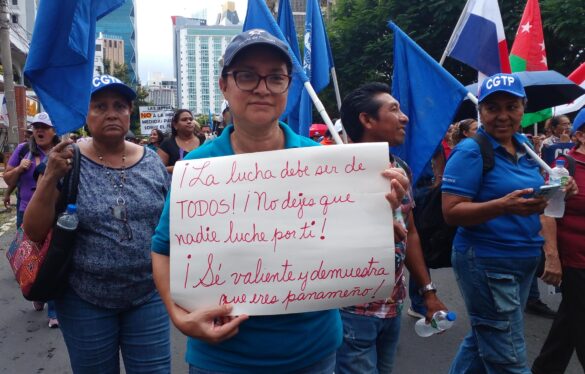 “Las mujeres están masivamente en las calles. A través de cánticos y consignas folklóricas, las maestras dan fuerza al mensaje, llamando a la unidad y solidaridad. Buscan que las mujeres, las más afectadas, sean escuchadas, exigiendo que, a pesar de contar con trabajos precarios y no haber podido cumplir con las semanas de cotización exigidas por el gobierno, se garantice el derecho a una jubilación digna y una vida plena» -Claudia Figueroa Pino, periodista e integrante del Centro de Comunicación y Derechos en Panamá.