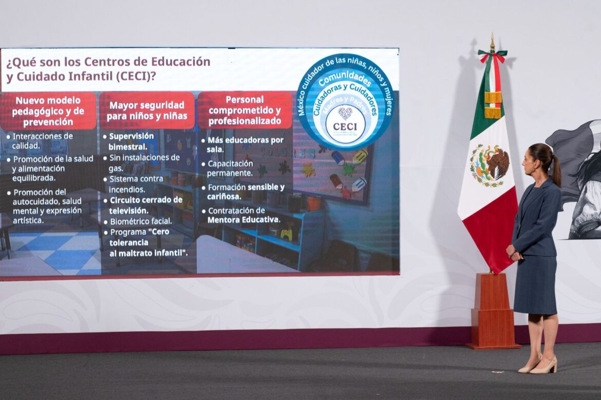 Ciudad de México.- Durante la Mañanera de este día, la presidenta Claudia Sheinbaum Pardo, anunció en conjunto con Zoé Robledo, titular del Instituto Mexicano del Seguro Social (IMSS), como parte de las Políticas del Bienestar para las Mujeres, el giro que le darán al modelo de guarderías conocido hasta el momento, para darle paso a nuevos espacios de modelo de atención para las infancias los cuales, según versiones oficiales, comenzarían las bases de un Sistema Nacional de Cuidados: los Centros de Educación y Cuidado Infantil (CECI), no obstante, esta propuesta se aleja de distribuir trabajo de cuidados para mujeres.