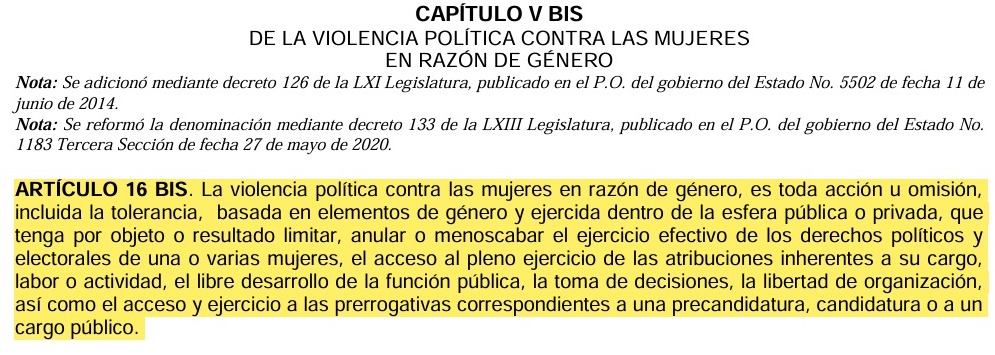 Esta ley fue impulsada por Yndira Sandoval, fundadora de Las Constituyentes, cuando fue víctima de violencia y tortura por elementos policiales en Guerrero durante el año de 2017. Un año después, su propuesta comenzó a impulsarse en congresos locales y hasta septiembre de 2023 Cimacnoticias documentó que en 12 estados aún no había sido aprobada, mientras que, en Chihuahua, estado de México, Puebla y Nuevo León su aprobación fue considerada como «a medias».