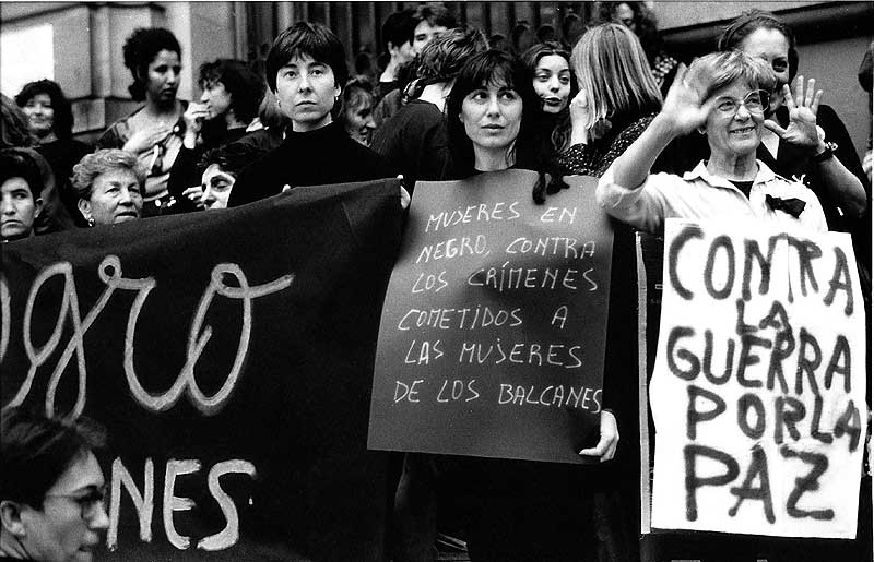 “Este ‘no’ a la guerra es un ‘no’ cargado de contenido, con el que decimos a nuestros líderes, de uno y otro signo, que las guerras son un crimen contra la humanidad y que a todas las consideramos ilegales, aunque estén declaradas bajo la tutela de la ONU.” -Mujeres de Negro contra la Guerra.