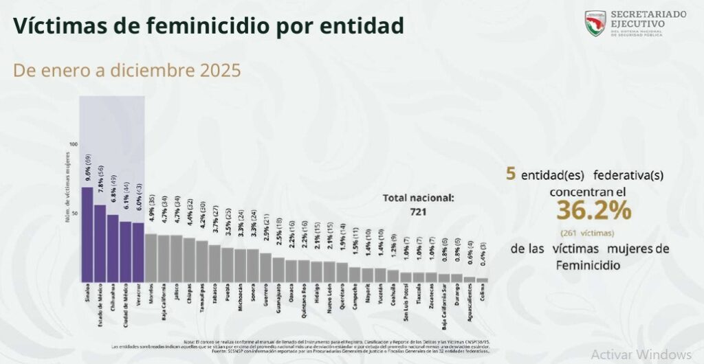 Datos del Secretariado Ejecutivo del Sistema Nacional de Seguridad Público (SESNSP) indica que solo en 2025 ocurrieron 721 casos de feminicidios en México; sin embargo, Chihuahua conformó la tercera entidad con mayor incidencia con un total de 49 casos en el último año y el municipio de Chihuahua es parte de los 20 municipios donde se concentraron el 27.3% de los delitos.