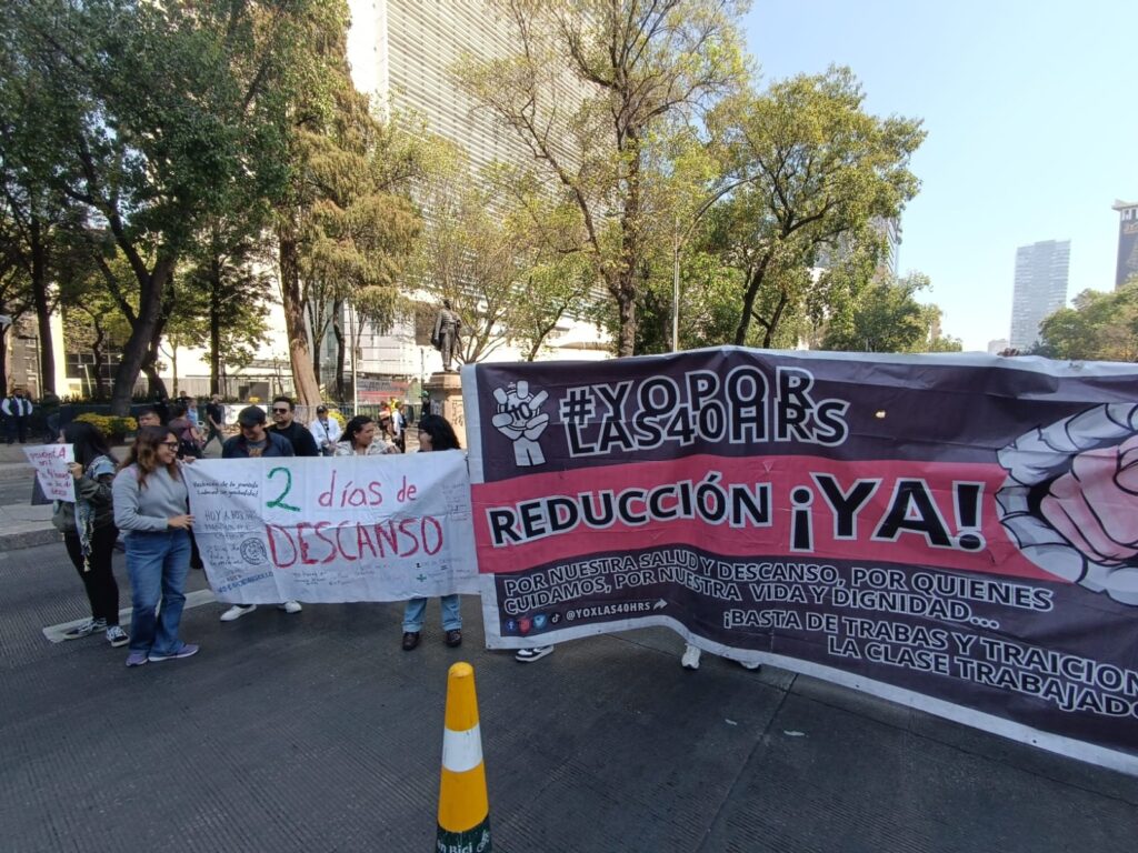 El Frente Nacional por las 40 horas también acusó a las senadoras y senadores que rechazaron el diálogo con las organizaciones de la clase trabajadora para seguir con la aprobación de la reforma de Sheinbaum, por lo que decidieron mantener un bloqueo en paseo de la Reforma y llevar a cabo un mitin en donde integrantes de la organización expusieron sus posturas sobre la reforma.