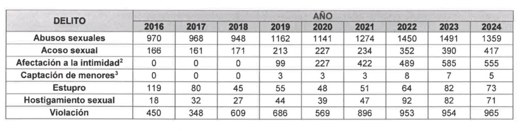 Ambos delitos se duplicaron en ocho años, al pasar de 184 casos en 2016 a 488 en 2024.