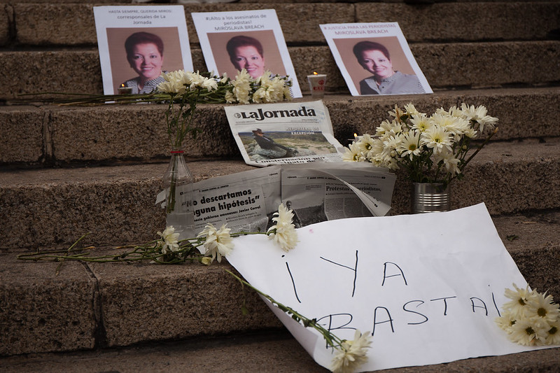 El jueves 23 de marzo de 2017, la periodista Miroslava Breach fue víctima de feminicidio afuera de su casa, mientras esperaba en su auto para llevar a su hijo a la escuela. Luego de cinco minutos, llegó al lugar la policía municipal y más tarde La Cruz Roja quienes confirmaron su muerte. A través de la policía estatal y servicios periciales encontraron una cartulina blanca con el mensaje relacionado a su labor periodística.