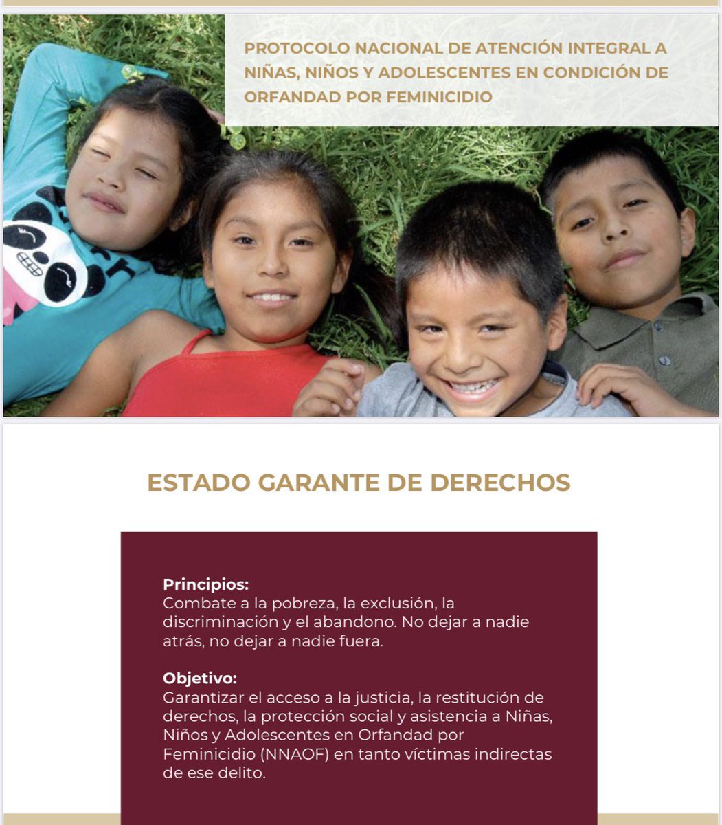 De acuerdo con lo expuesto por la Subsecretaría del Derecho a una Vida Libre de Violencias, Ingrid Gómez Saracíbar, la ley contempla: la creación de un Registro Nacional de menores en orfandad por feminicidio; acceso a salud, educación y seguridad social; atención psicológica especializada, medidas de restitución de derechos.