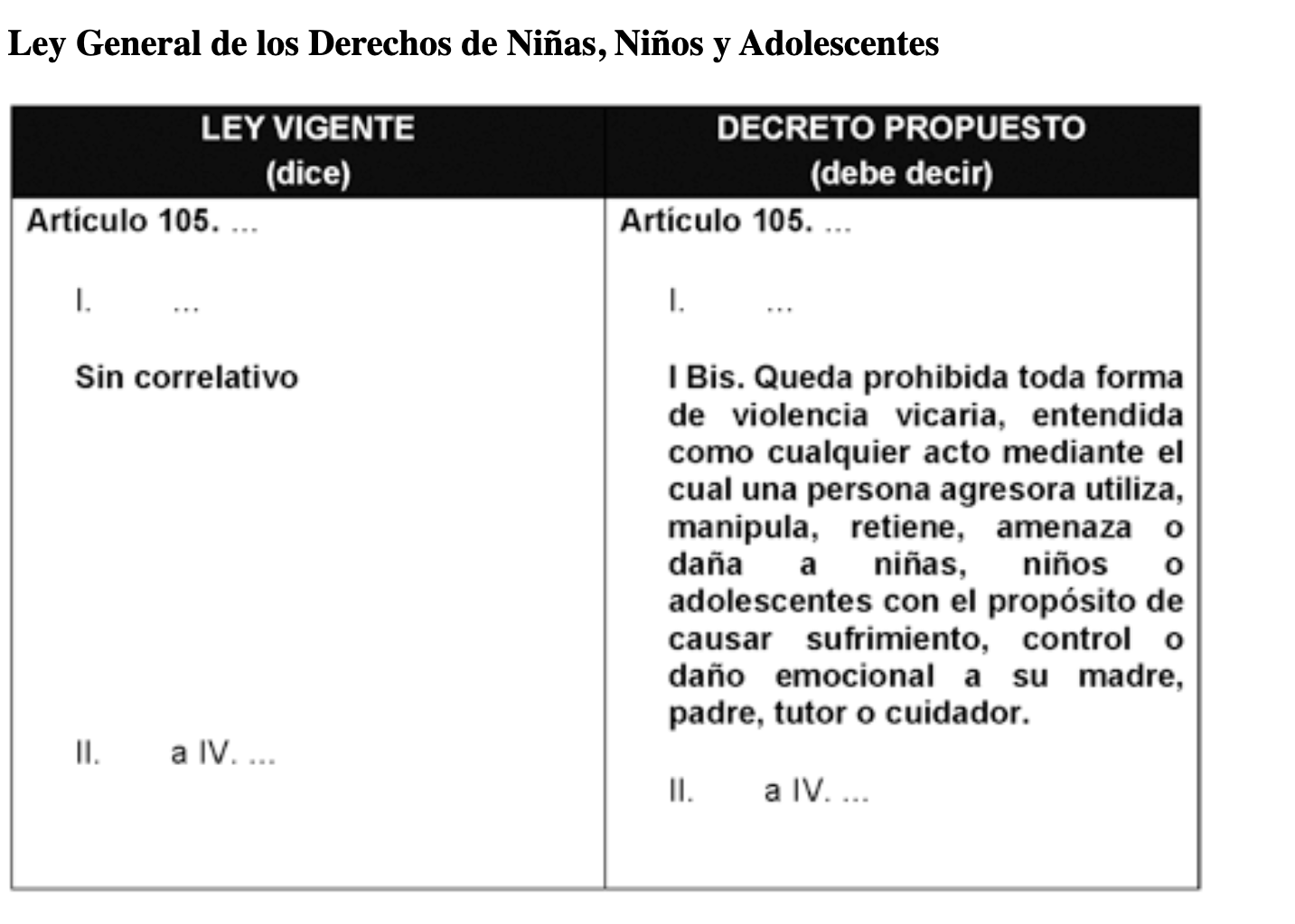 Por ello, la legisladora Mónica Elizabeth Sandoval Hernández, plantea que si bien la Ley de Acceso de las Mujeres a una Vida Libre de Violencia reconoce el tipo penal, la Ley General de los Derechos de Niñas, Niños y Adolescentes (LGDNNA) debe incorporar la prohibición expresa de la violencia vicaria como un tipo de maltrato infantil prioritario. Afirma que actualmente, existe un vacío legal y una laguna de atención institucional que impide proteger de manera eficaz a las y las menores, aseguró.