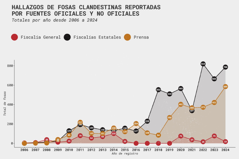 En febrero de 2026, las organizaciones como Data Cívica, Artículo 19 e Ibero México actualizaron la Plataforma Ciudadana de Fosas hasta el año 2024 y encontraron que la Fiscalía General de la República reportó solo 18 fosas, mientras que las Fiscalías estatales documentaron 786 y la prensa reportó la existencia de 585. Con estos datos denunciaron que persisten obstáculos para conocer el verdadero panorama de la crisis forense.