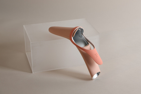 El diseño cilíndrico de Ninfem está inspirado en la forma de la copa menstrual, la cual se dobla para poder introducirse y luego adopta la forma del canal vaginal. De hecho, al igual que la copa, el espejo diseñado por Rosales Dávila está fabricado con silicón de grado médico, un material más amigable al tacto y con una temperatura ambiente.