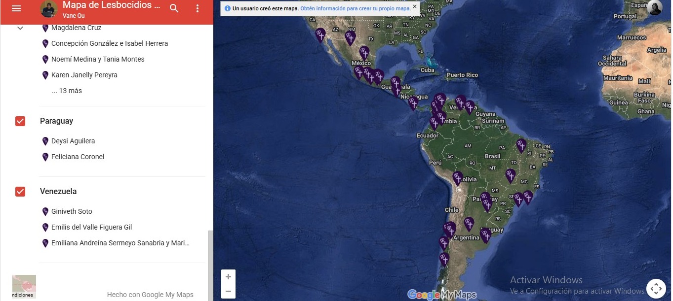 Según la información proporcionada por las feministas Jennifer López Sánchez y Vanessa Quintana, el mapa que realizaron es el primero que realiza un acercamiento respecto a las víctimas de lesbofeminicidio con respecto a las víctimas. A partir de notas periodísticas, la cartografía reúne el nombre de la víctima, el año en que ocurrieron los hechos y una pequeña descripción sobre cómo sucedió el lesbofeminicidio.